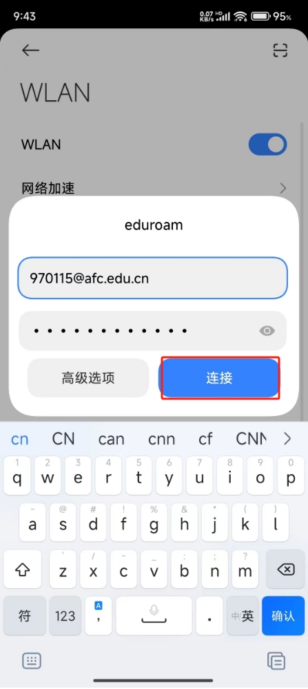我校师生至外访联盟单位WIFI无线网络覆盖范围内,搜寻无线网信号名称为“eduroam”的无线网络信号后选择连接,上网账号为我校网络账号(用户名为“beat365在线唯一官网上网账号@afc.edu.cn”,如970115@afc.edu.cn,密码同我校上网密码)。