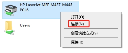 (4)完成后出现如图12所示界面,在目标打印机上鼠标右键选择连接,系统会自动安装打印驱动。