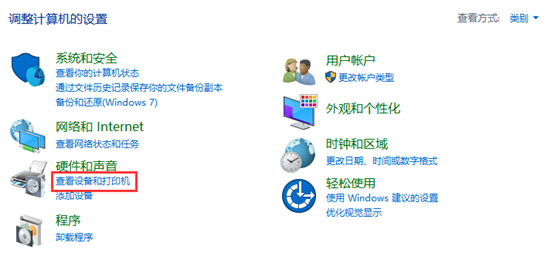 1、打开控制面板,找到设备和打印机选项,如图1所示。