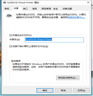 3、 切换到【共享】选项卡,勾选共享这台打印机,并且设置一个共享名(可以不用改),如图3所示。