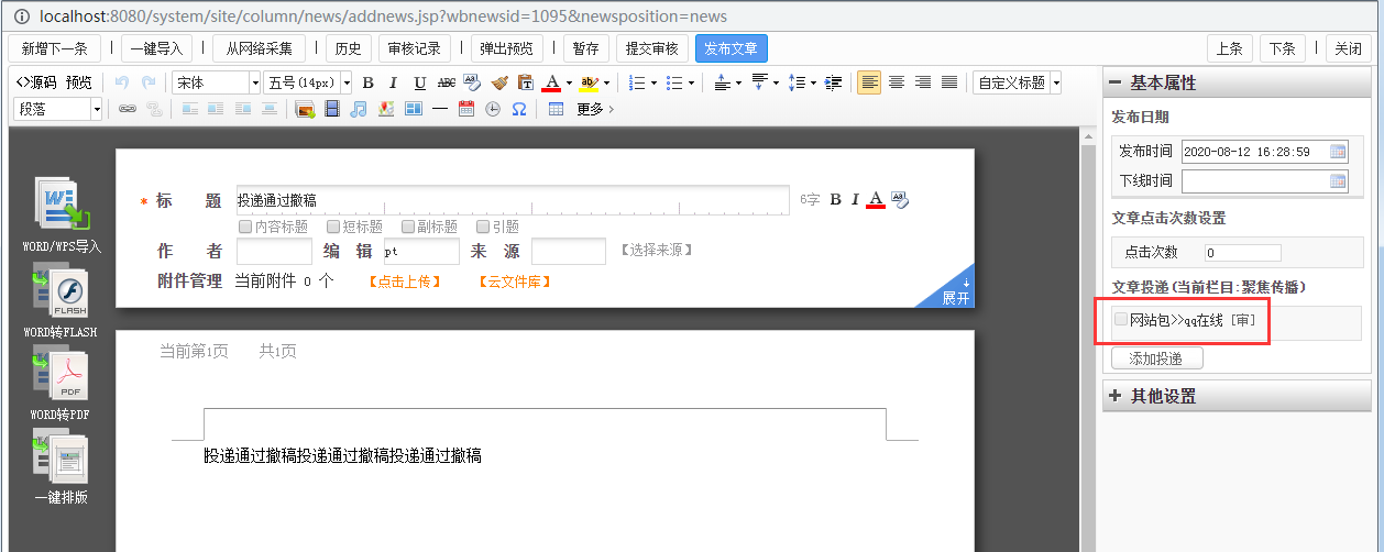 投递选择不了是由于目的站点对文章进行了修改或者是撤稿操作,即A投递到B,B站文章修改或撤稿了这样我们在原站点A修改文章的时候投递关系就会断开,同样也勾选不了投递了,要想再次投递只能是重新新增一篇文章添加投递。
