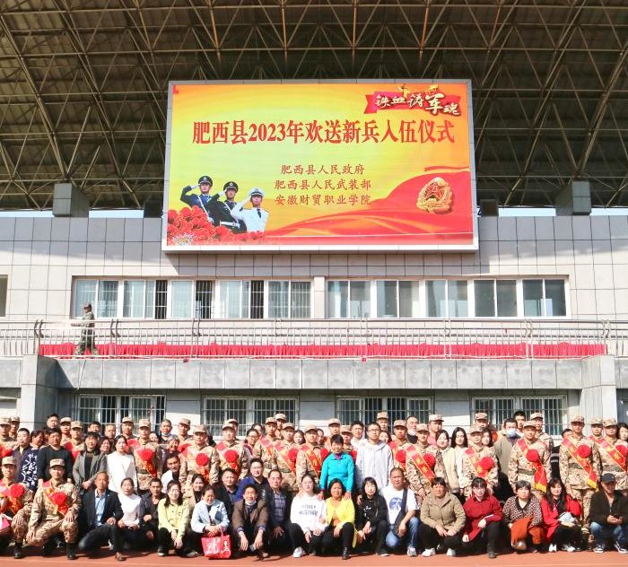 为进一步营造“一人参军、全家光荣、全社会尊崇”的浓厚氛围,激发军人军属的荣誉感、自豪感,3月15日上午,肥西县在我校隆重举办2023年上半年入伍新兵欢送大会。副县长、县公安局长孙民,学校党委委员、副校长胡戴新,军地有关领导、县征兵工作领导小组部分成员单位、各级征兵工作人员、全体新兵及家长等,共计700余人参加大会。