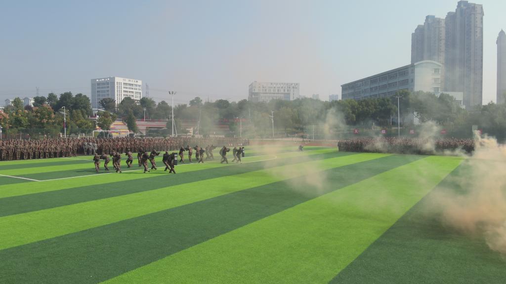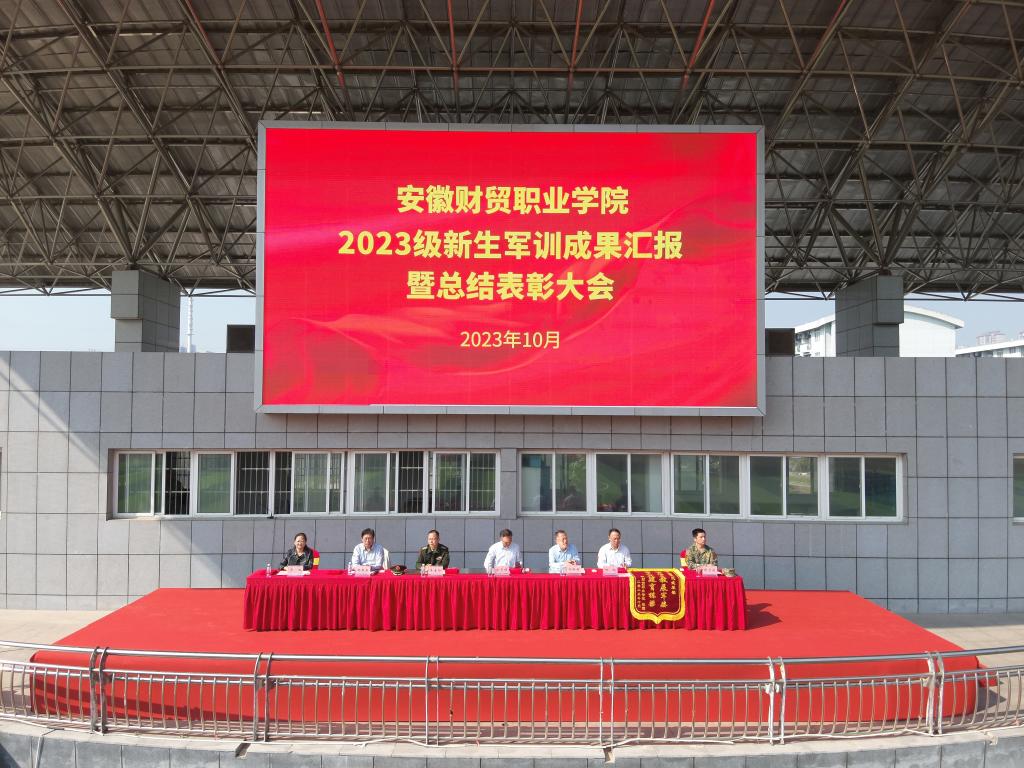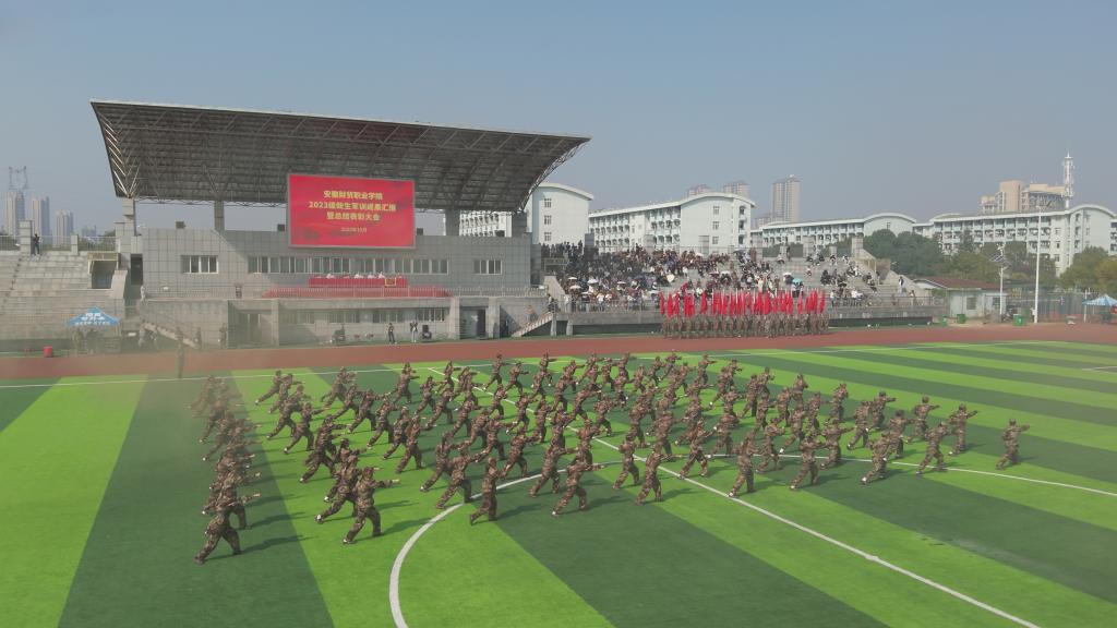 10月26日上午,我校2023级新生军训成果汇报暨总结表彰大会在田径场举行。学校领导张志祥、刘银国、何翔、胡戴新、罗虹、承训单位肥西县人民武装部出席大会,2023级新生军训工作领导小组成员、新生班级辅导员参加大会。会议由党委委员、副校长胡戴新主持。