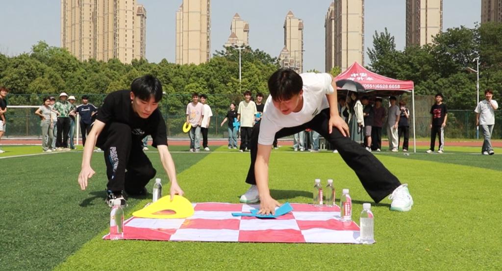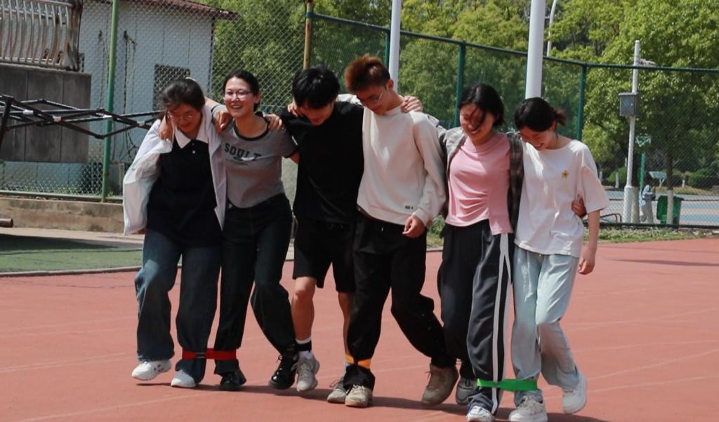 本次运动会以“解压同心,趣动同行”为主题,设置“背对背拥抱”“不倒森林”“盲人刺客”“六人七足”“穿越呼啦圈”“乒乓球接力”“井字棋”“心有灵犀”等八个比赛项目,使学生在运动的过程中放松身心,增进友谊。比赛过程中,同学们热情高涨,配合默契,充分彰显了团队的凝聚力与协作精神,成为赛场上一道亮丽的风景线。