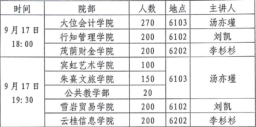 1、9月17日新生班级助理、心理委员、寝室长及其他学生参加新生心理普测工作培训会。