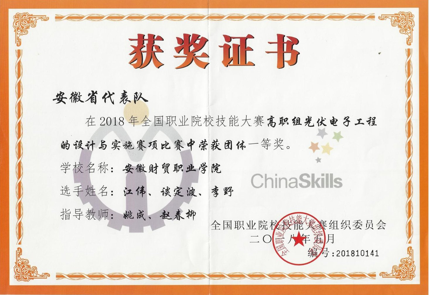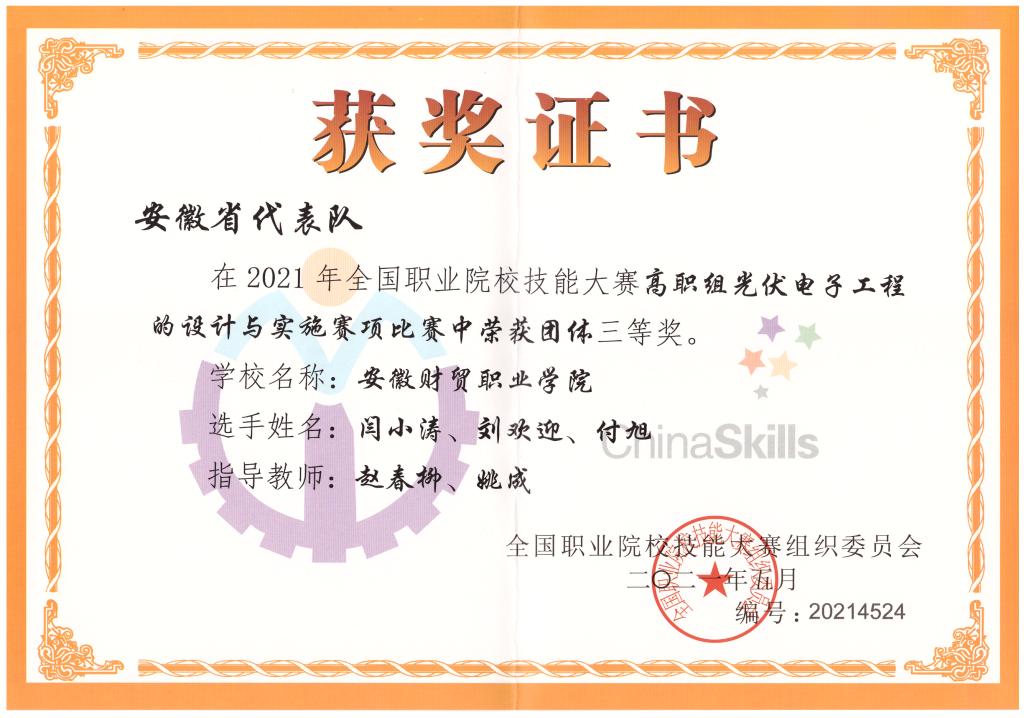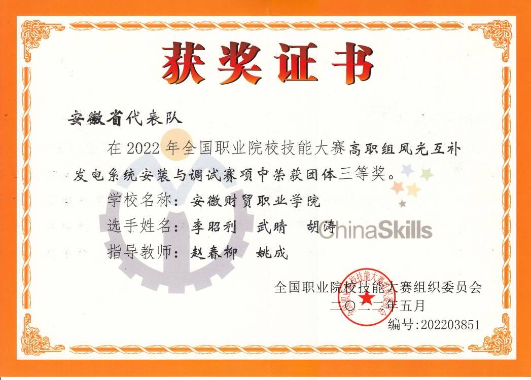 光伏工程技术专业前身新能源应用技术(学院重点建设专业)为全国高等职业院校最早开设的新能源类专业,师资力量雄厚,光伏工程技术教学团队为安徽省级教学团队,学生参加全国职业院校技能大赛获得一等奖2项、二等奖3项,三等奖3项。
