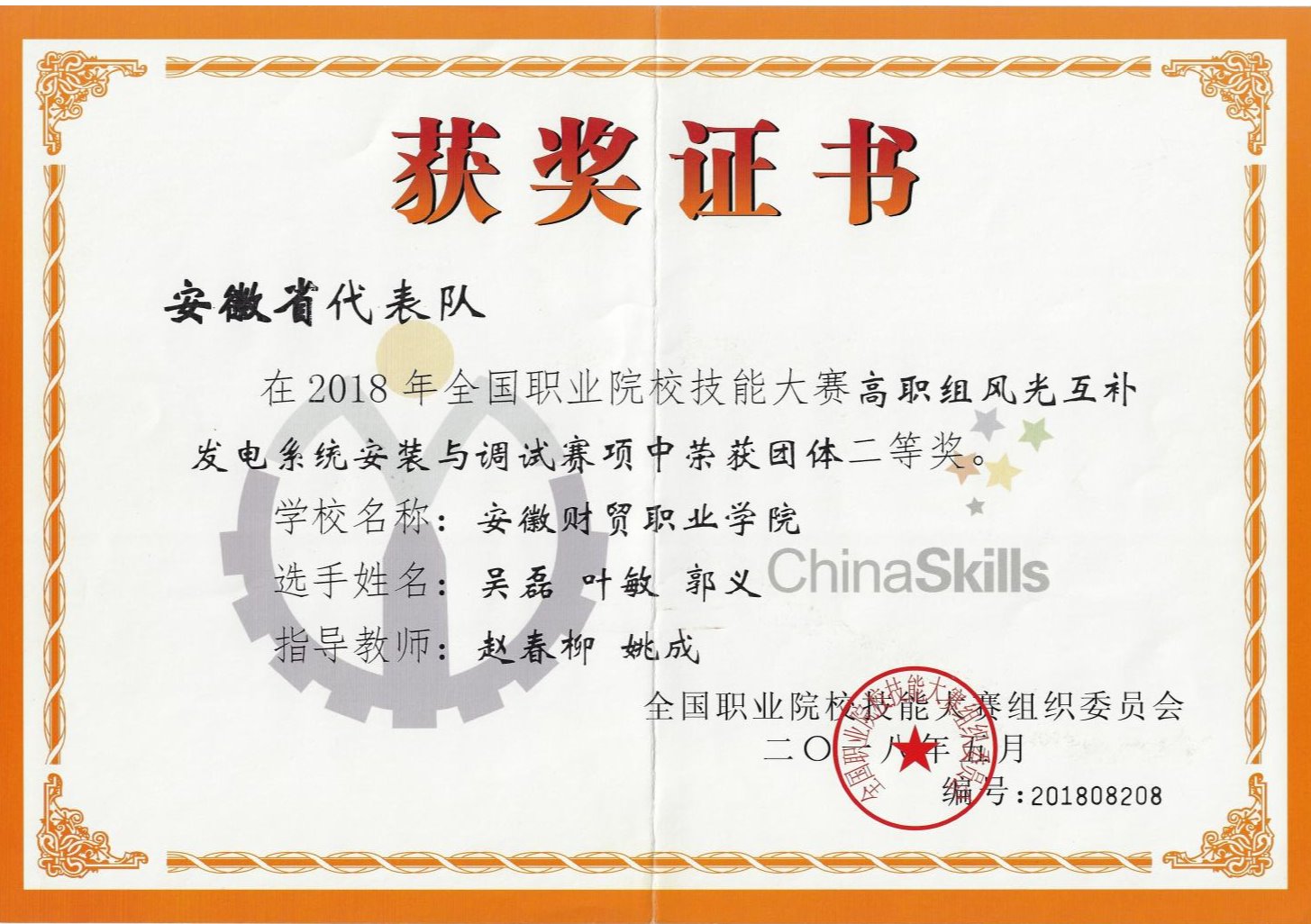 图5 2018年“风光互补发电系统安装与调试”国赛二等奖
