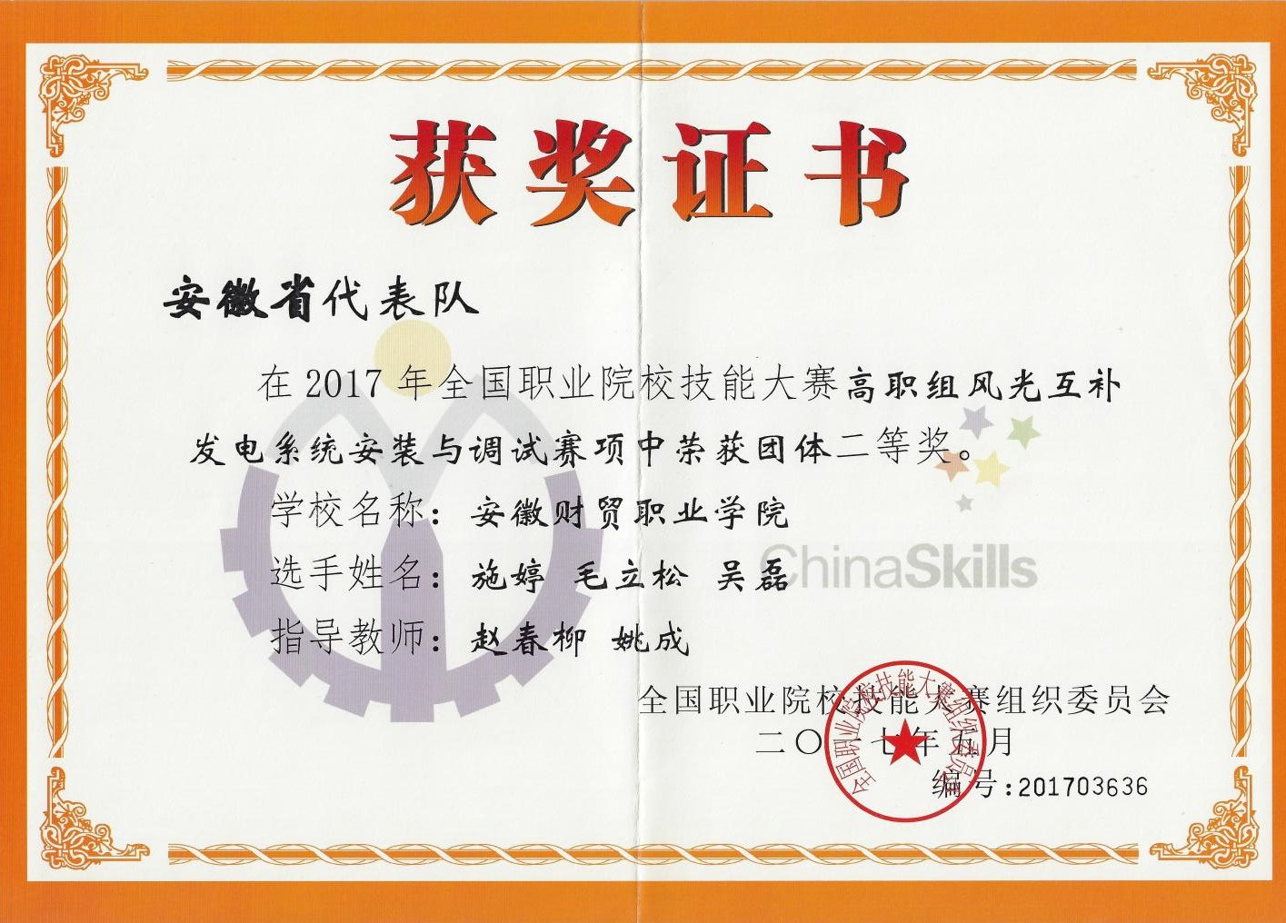 图7 2017年“风光互补发电系统安装与调试”国赛二等奖