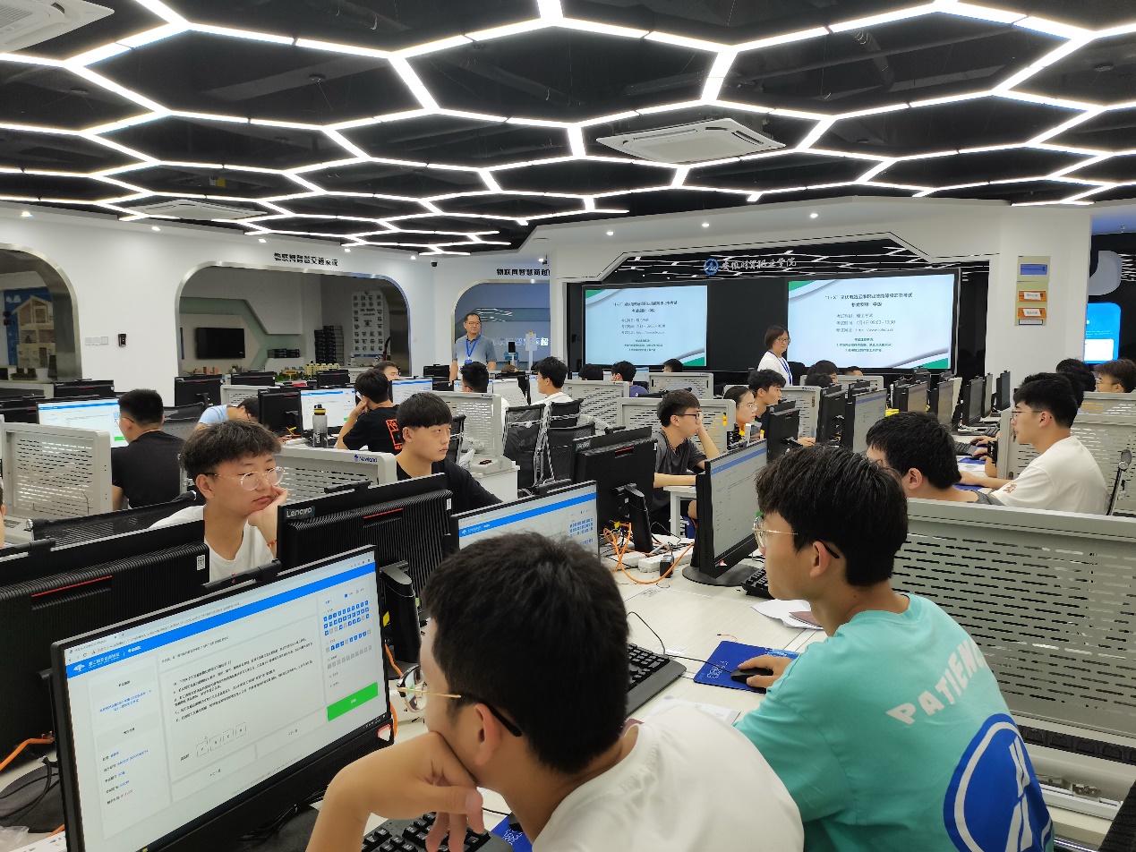 我校光伏工程技术是教育部批准的第三批“1+X”证书试点制度“光伏电站运维”职业技能等级证书的试点院校和专业。在学校“1+X”证书制度试点工作领导小组的统一领导下,信息工程学院高度重视本次“光伏电站运维”证书的认证工作,邀请瑞亚工程师参与考证培训工作。考前,组织初级考证合格学生参与为期一个月的考点梳理,模拟测试等考前培训,并严格按照考场标准完成考务组织和考试系统安装、测试、封场等工作,考中,监考教师严格按照考证流程执行考试程序,考后及时备份上传考试数据,圆满完成了本次认证考试工作。