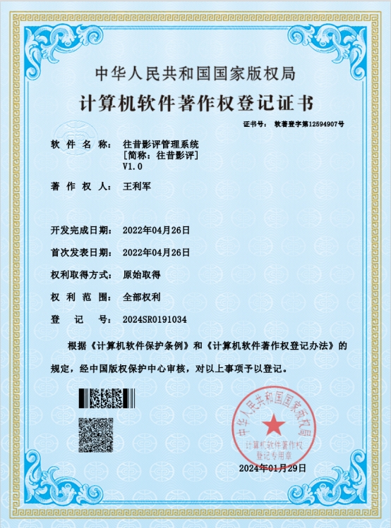 图4 教师取得的软件著作权证书