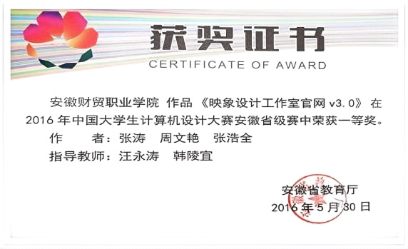 图10 2016年中国大学生计算机设计大赛荣获安徽省赛一等奖