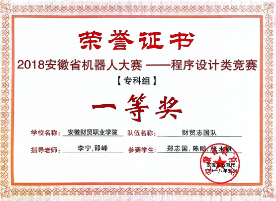 图11 2018年安徽省机器人大赛荣获安徽省赛一等奖