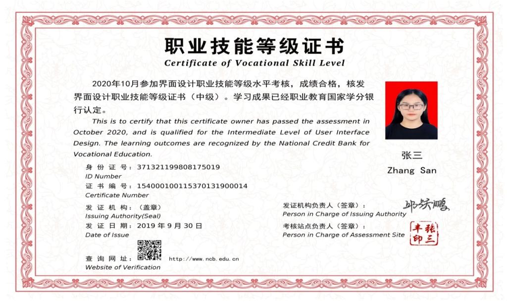 图14 界面设计职业技能等级证书(中级)