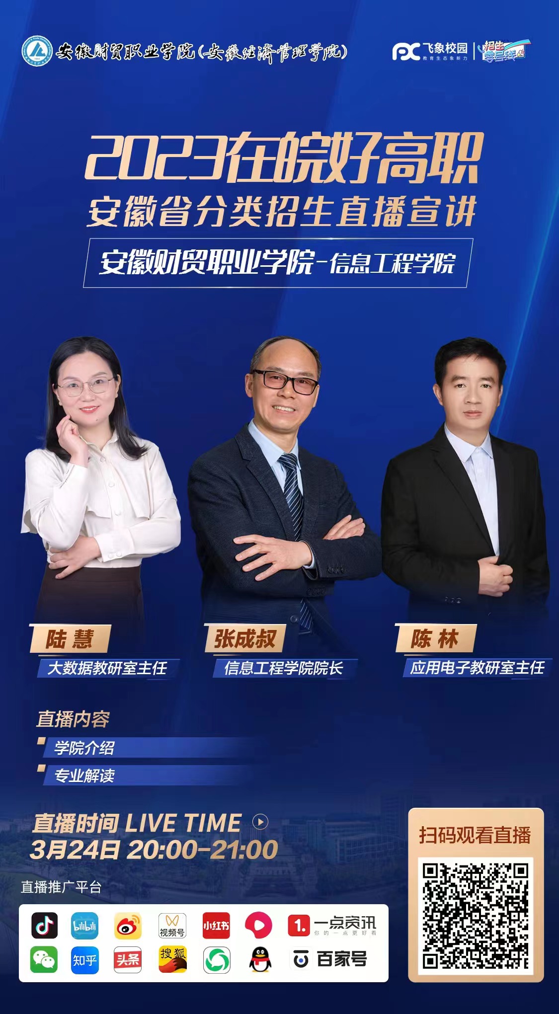 教育兴则国家兴,青年强则国家强。信息工程学院以为党育人、为国育才为使命,多措并举开展招生宣传,吸引优秀生源。祝福莘莘学子圆梦今朝,书山筑路,期待与你们相见于九月的安财院校园,再次扬帆启航!