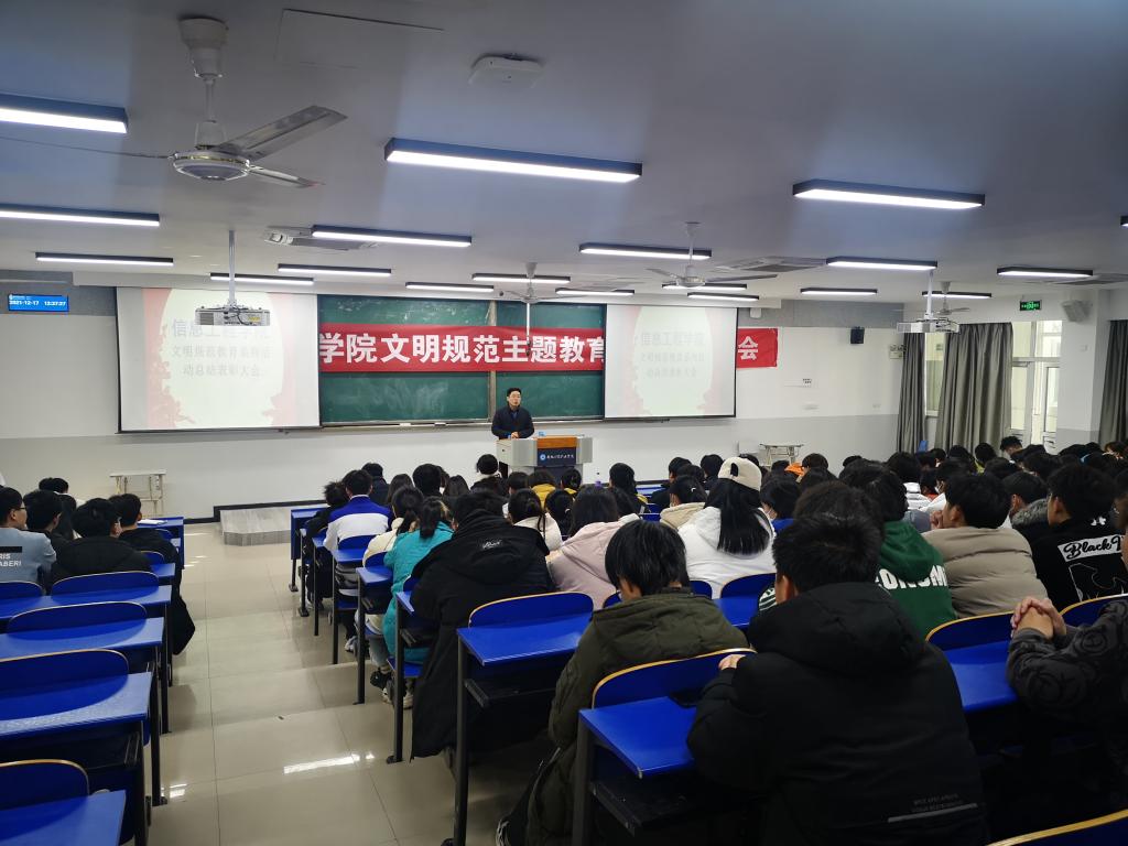 12月17日信息工程学院在6103教室举行了文明规范教育系列活动总结暨表彰大会。党总支副书记张伟伟、团总支书记梅云凤、所有专职辅导员出席了表彰大会。