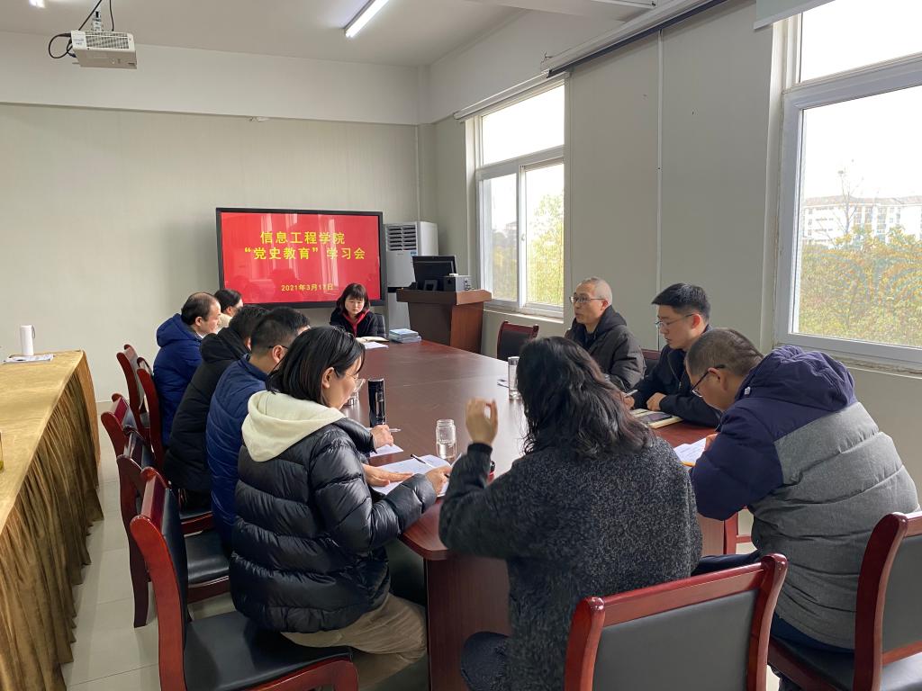 3月17日下午,信息工程学院党总支召开全体教职工会议,进行党史学习教育动员,并组织集体学习。会议由党总支书记邓庆安主持。