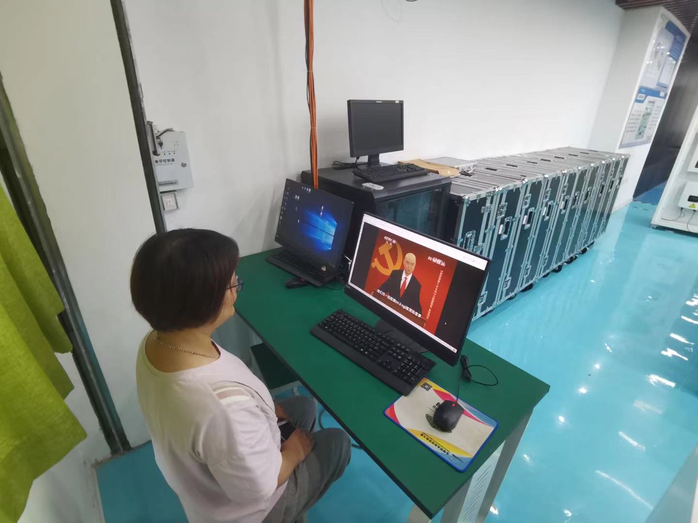 7月30日,信息工程学院党总支开展“党员干部党史学习教育日”,全体党员同志参观马克思主义学院智慧思政情境实训室,重温入党誓词,在线开展党史学习教育。