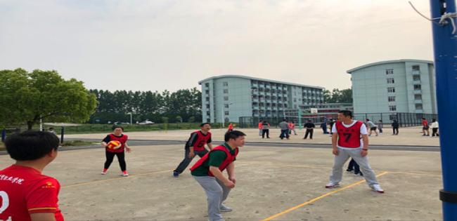 年轻的团队活力满满,党总支副书记倪晶晶根据队员们的年龄、性别、身高和熟练程度将教师们分为1队和2队,工会组长董小卿老师细心指导大家的发球动作和接球技巧。开赛前,气氛相当激烈,“战争”一触即发,很多学生观众聚集在赛场周围翘首以待。比赛一开始双方就势均力敌,难分上下。队员们各施绝技,一个个精彩扣球,拦网,队员们互相配合,相互鼓励,最终由于时间的关系以平局结束了这场欢乐的比赛,也为即将展开的校气排球决赛提前热身。