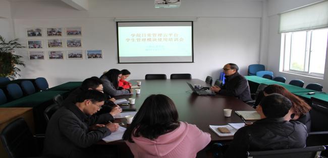 3月1日,为服务全校师生,推荐智慧校园建设,云桂信息学院副院长张成叔召集各院系学生秘书在综合楼三楼会议室举行学院日常管理云平台培训会。