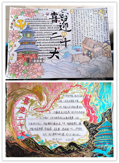 活动围绕“科技兴国”、“奥运精神”、“黄河故事”、“航天精神”、“红色传承”等题材进行创作,秉持着发掘创新思维的宗旨,面向2022级全体同学征集参赛作品。同学们积极响应、反响强烈,比赛共征集作品90件,有的以清新淡雅的水彩吸引关注,有的以浓墨重彩的蜡笔抒情达意;手抄报上的字体或刚劲有力,或娟秀柔美,或洒脱飘逸;手抄报的格式的设计也是推陈出新,各有特色,足见设计者的创新能力和用心程度。各种元素极尽融合,充分表达了同学们对祖国的美好祝愿和爱国爱党的情怀。经过严谨公正的评选,软件2202班周漩,软件2203班江玉婷,数媒2202班石尚锦,数媒2203班牛玉莲,物联2201班陈佳佳,物联2202班周冰倩荣6位同学的作品获得了一等奖。