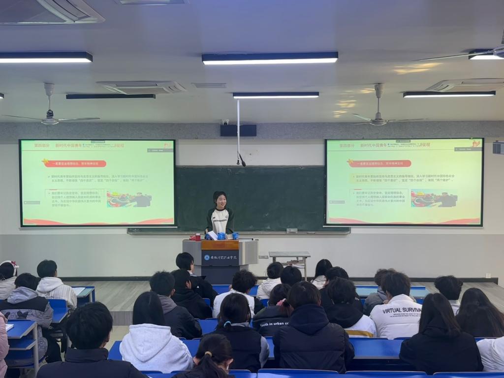 为加强对各入团积极分子的思想政治引领,增强社会责任感和历史使命感,12月6日,信息工程学院于5201教室开展“新时代青年的使命和担当”主题团课,此次团课由学生会主席张妮担任主讲人,全体入团积极分子参与此次活动。