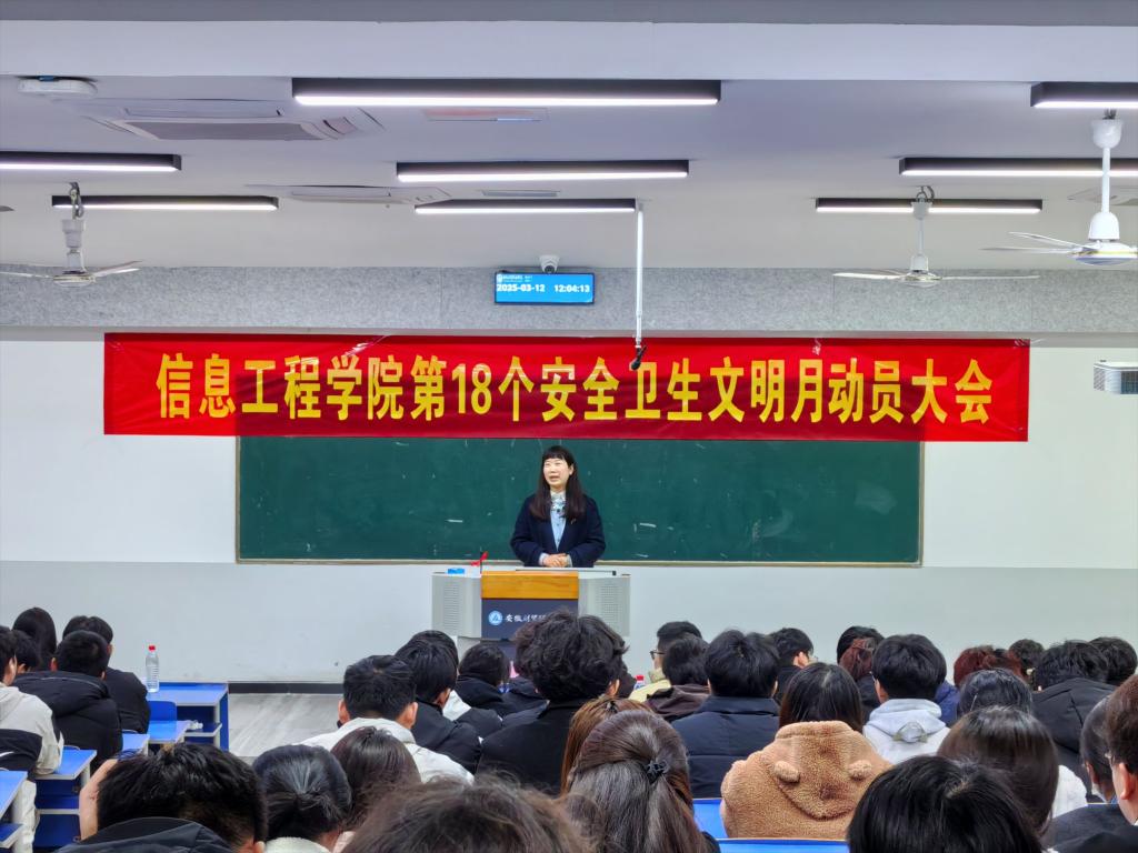 为进一步提升学生安全意识,营造文明和谐的校园氛围。3月12日,信息工程学院第18个安全卫生文明月动员大会在5102教室顺利举行。