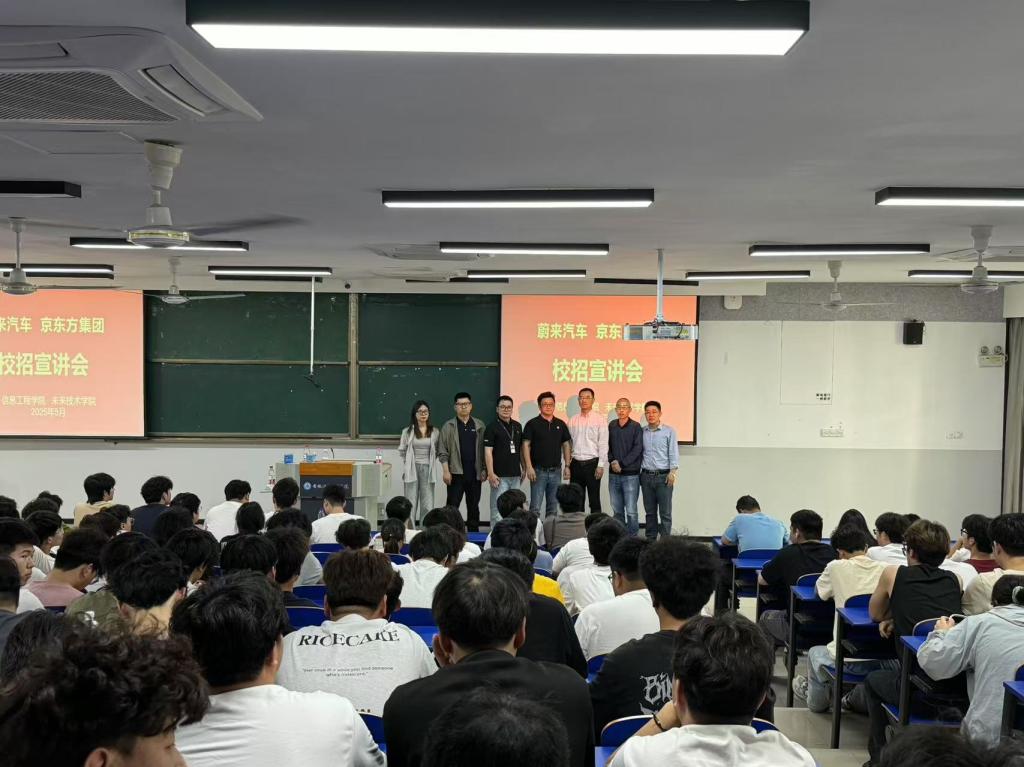 5月7日下午,信息工程学院和未来技术学院共同邀请蔚来汽车和京东方集团公司,在6103教室举办校园招聘宣讲会,共计300余名师生参加。