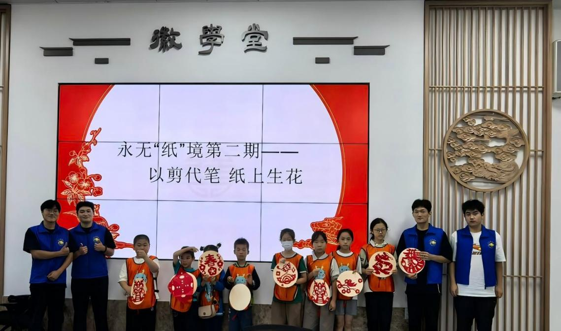 2025年10月6日,信息工程学院组织志愿者前往安徽博物院蜀山馆,开展“以剪代笔·纸上生花”志愿服务活动,推动剪纸艺术的传播与普及,促进中华优秀传统文化在青少年群体中的传承与弘扬。