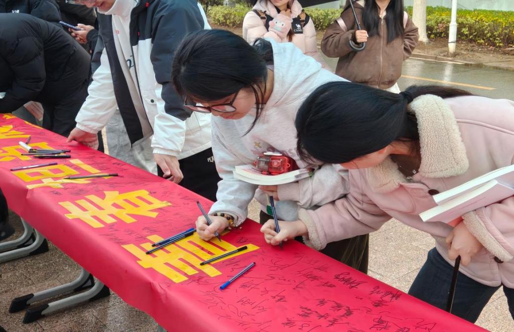 活动前,团总支学生会各部门紧密协作、各司其职。活动开始后,现场秩序井然有序,同学们在工作人员引导下自觉排队,依次在横幅上郑重签名。每一笔签名都承载着青年学子对雷锋精神的敬畏与认同,大家以实际行动承诺践行奉献精神,现场氛围庄重热烈,尽显信工学子昂扬向上的青春风貌。