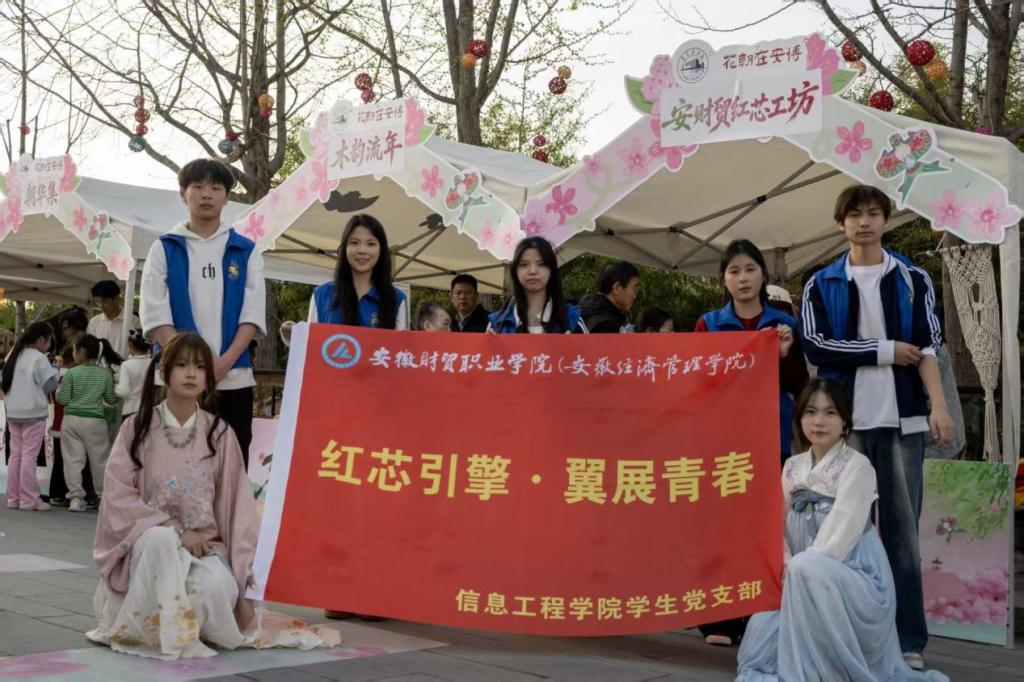 3月28日,信息工程学院师生参加了安徽博物院“花朝在安博”传统文化与非遗展演春日专场活动,本次活动有风物市集、非遗文化体验、文艺演出、春日游园等丰富多彩的形式。师生们受邀参加了非遗文化体验和节日志愿者两项活动。学院特别开设“安财贸红芯工坊”特色展位,通过漆扇扎染体验与义卖活动,助力传统文化传播,展现我院青年学子的青春风采。