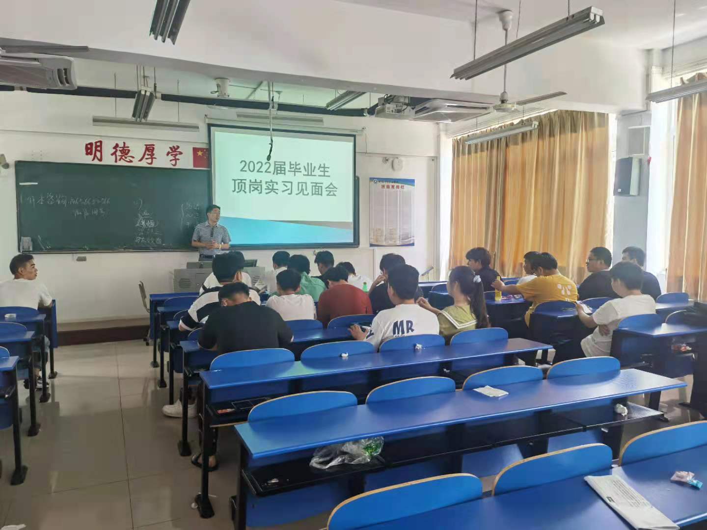 7月19日中午,信息工程学院2022届全体毕业生以班级为单位分别组织召开了顶岗实习动员会暨师生见面会,全体指导老师及2019级班级辅导员参加会议。会议由各班辅导员主持。