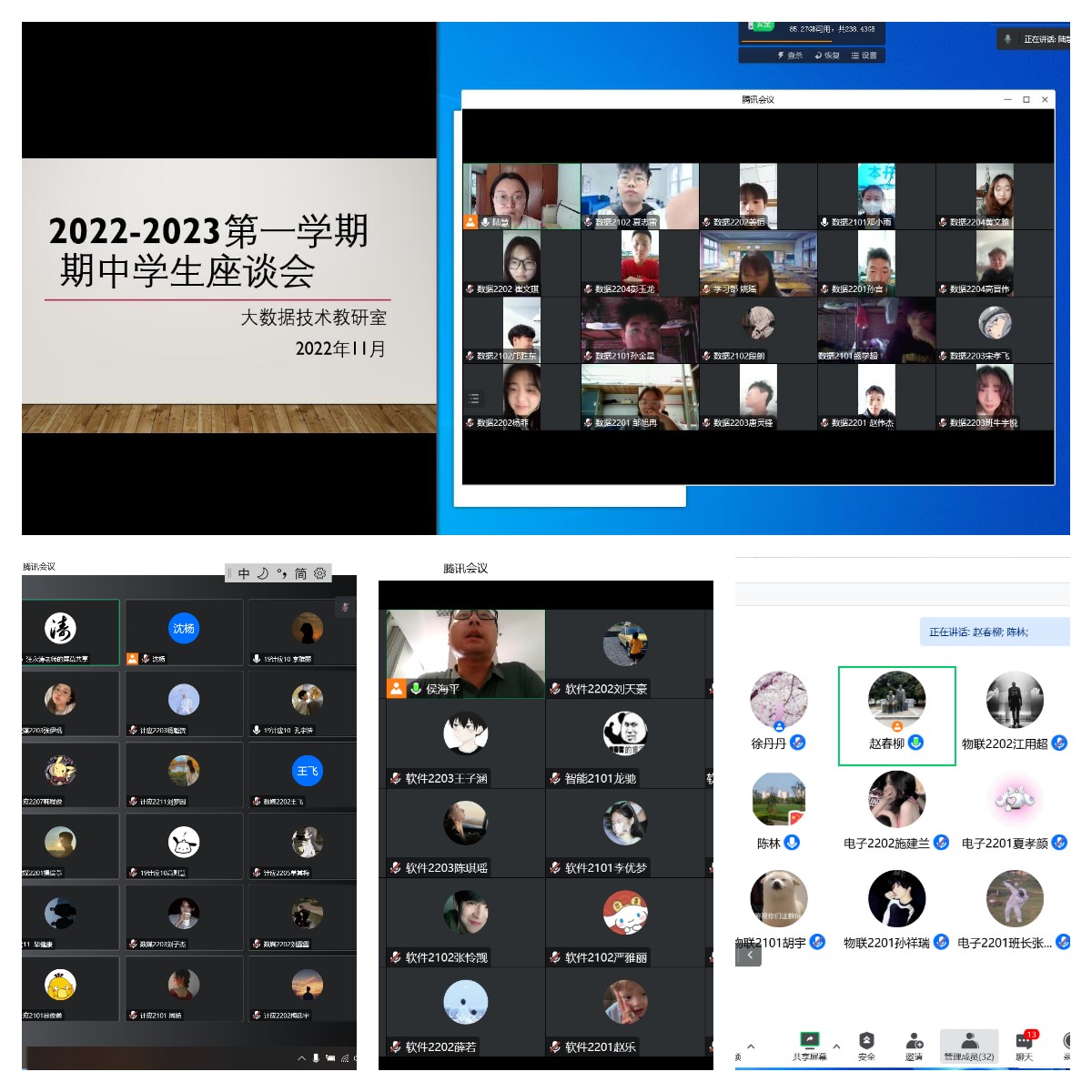期中教学检查周期间,信息工程学院借助腾讯会议,以教研室为单位分别组织召开了期中教学检查线上学生座谈会,副院长姚成、教研室主任(副主任)侯海平、陆慧、汪永涛、赵春柳、沈杨、陈林以及2021级、2022级各班班长、学委和学生代表参加会议。会议由各教研室主任主持。