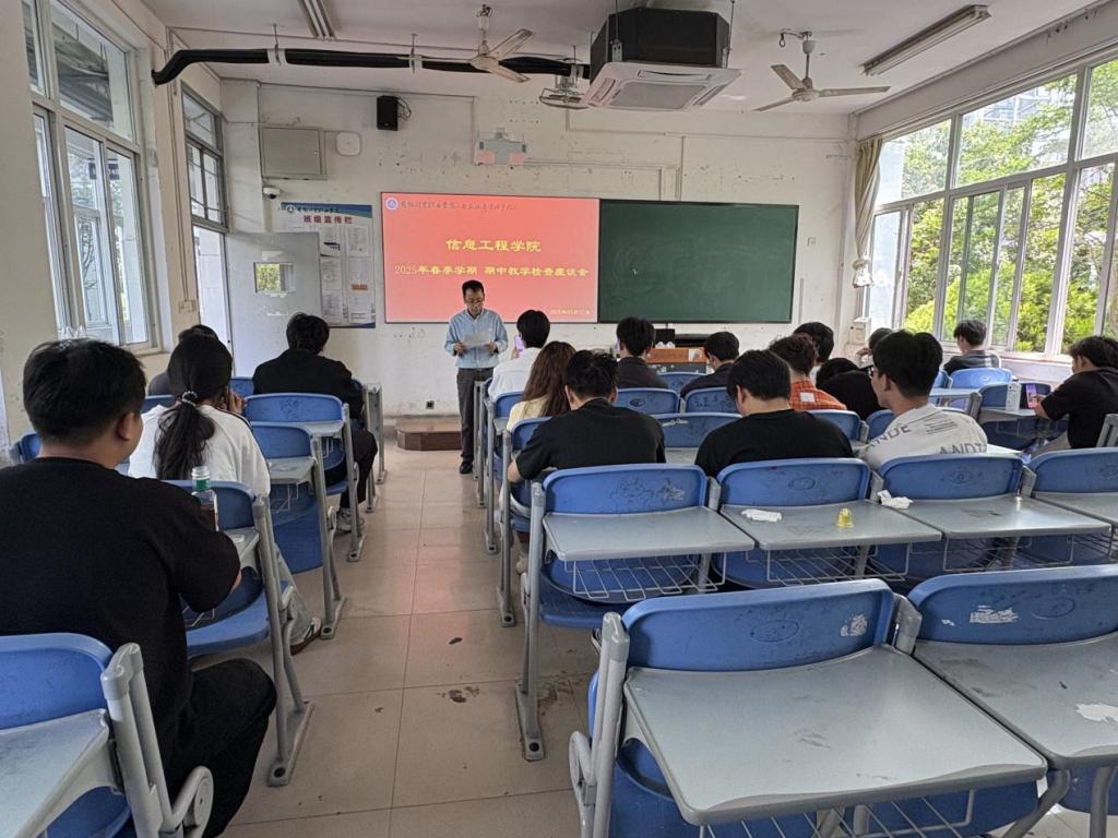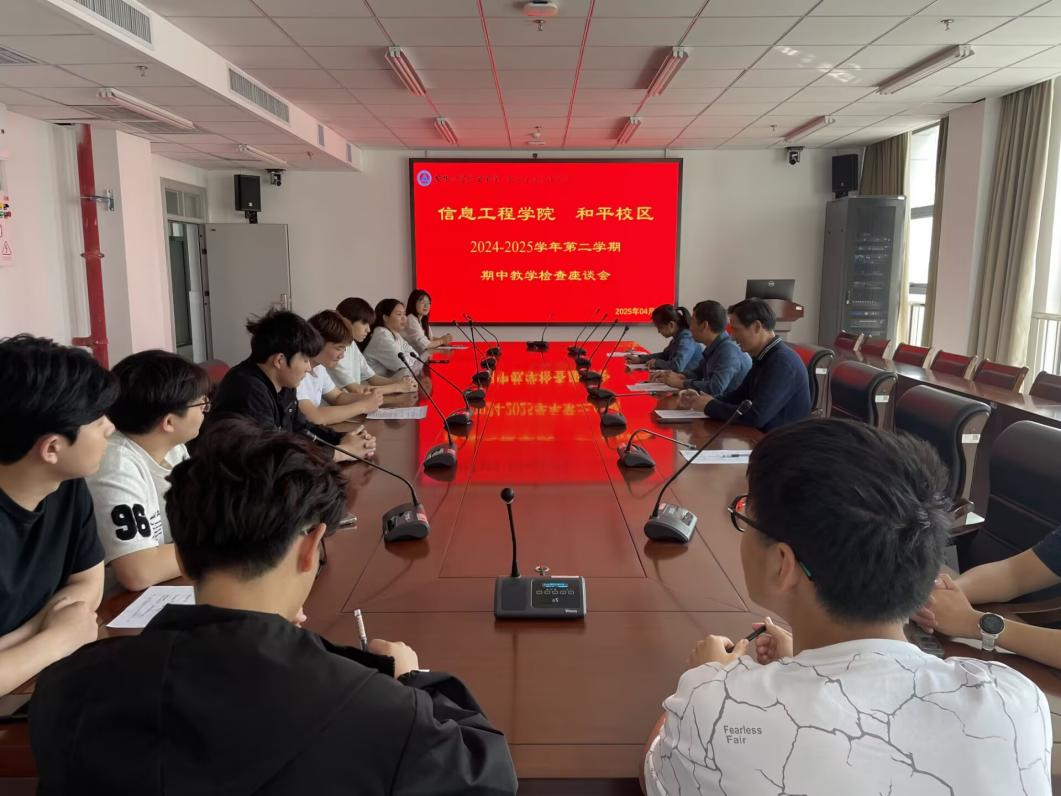 为深入了解教学动态,提升人才培养质量,4月24日、25日,信息工程学院分别在翡翠校区、和平校区召开期中教学检查学生座谈会。和平校区管委会办公室执行副主任朱仁道、信息工程学院副院长耿家礼、相关教研室负责人以及33个班级的学生代表参加了座谈会。