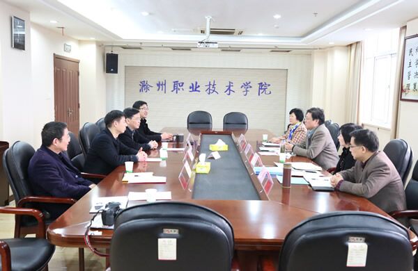 在滁州职业技术学院,院长李柱梁、副院长汪上、院长助理穆松介绍了学院紧紧围绕滁州市六大支柱和高新产业,不断优化专业结构,积极探索“双元制”模式中国化的方法和途径,更好地服务地方经济的做法和实行创业孵化基地多位一体的运营管理模式。