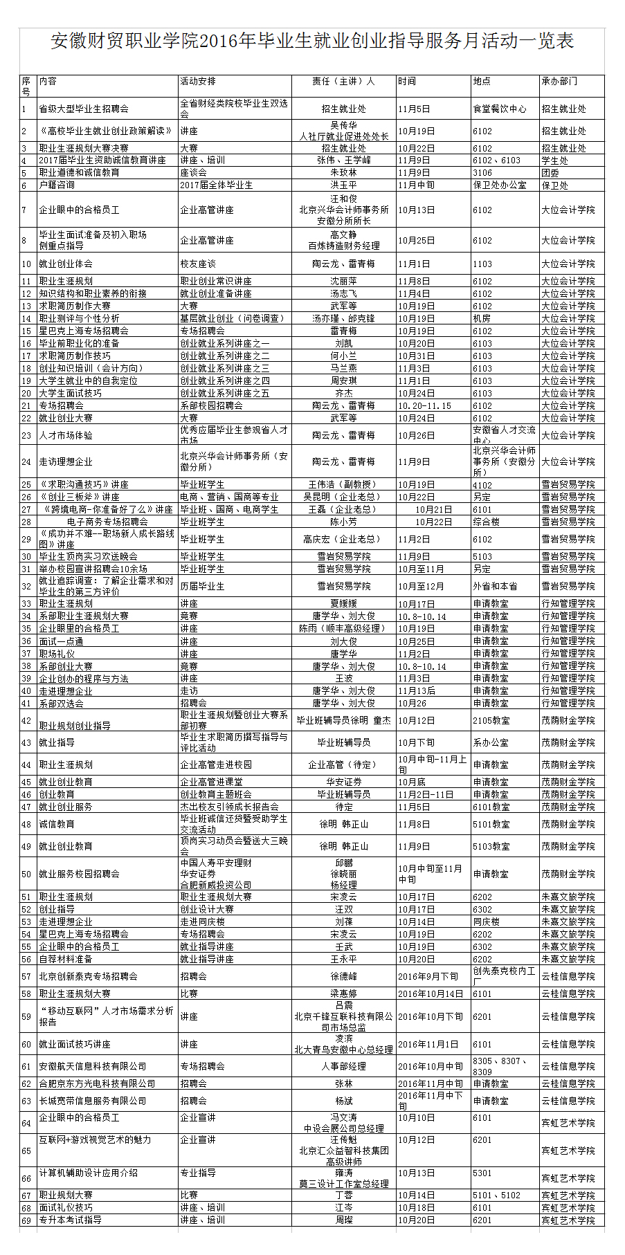 beat365在线唯一官网2016年毕业生就业创业指导服务月活动一览表