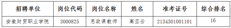 根据省人社厅《关于印发2021年度安徽省省直事业单位公开招聘工作人员实施方案的通知》(皖人社秘〔2021〕103号)文件精神,报考3000825思政课教师岗位考生王敏(2134301001001),因本人原因,自愿放弃录用资格。按招聘岗位考试总成绩排名顺序依次递补,现将拟递补人员予以公布。