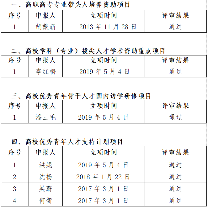 根据《beat365在线唯一官网关于做好高校人才项目集中结项工作的通知》(组发〔2021〕4号)和《安徽省教育厅关于规范人才项目结项备案管理的通知》(皖教秘人〔2017〕39 号)文件精神,经过教师申请、职能部门初审、专家评审等程序,现将人才项目集中结项评审结果公示如下: