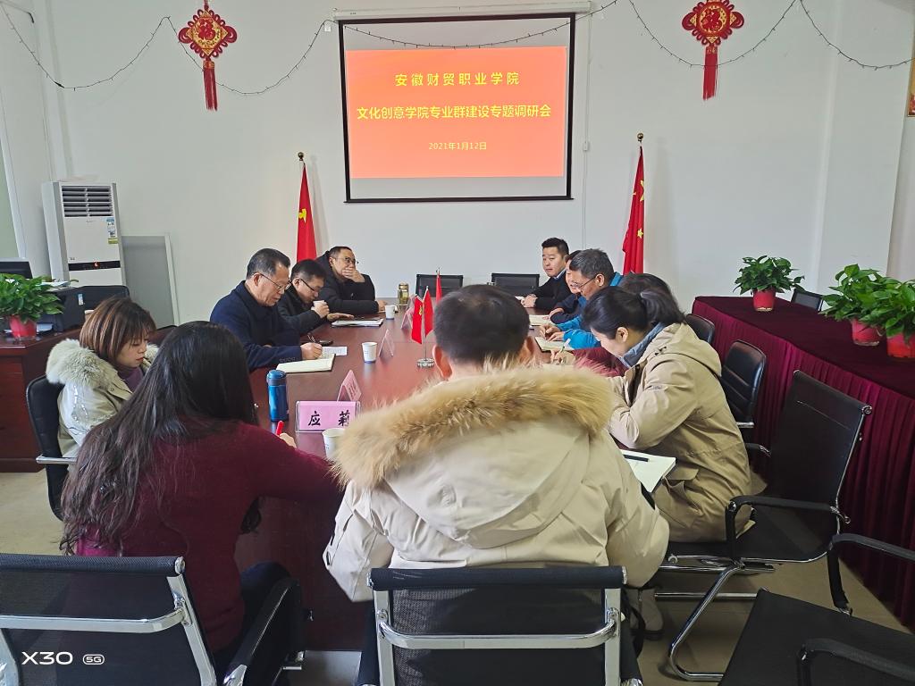 1月12日上午,学院党委副书记、院长刘银国深入文化创意学院调研院部专业群建设工作,指导院部建设发展。院部党政负责人、教研室主任和行政人员参加了调研座谈会。办公室、教务处相关负责同志陪同调研。