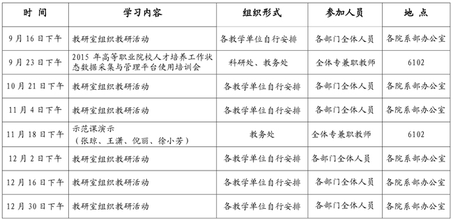 2015-2016学年度第一学期业务学习安排