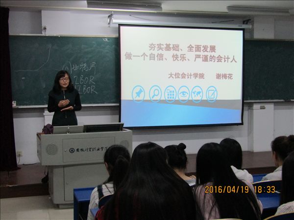 4月19日晚,学院第六期财贸大讲堂第六场讲座在6102教室举行。主讲人谢梅花是大位会计学院会计教研室主任,她以“夯实基础、全面发展,做一个自信、快乐、严谨的会计人”为题,分享了会计职业的修炼之道。
