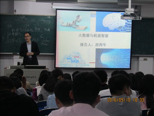 5月10日晚,第六期财贸大讲堂第八讲在6101教室举行,主讲老师房丙午来自电子信息系,他以“大数据与人工智能”为题,介绍了全世界当前人工智能的发展情况。