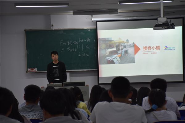 讲座在6102教室举行。赵立海介绍了他在校期间“搜客小铺”、“财贸家园休闲精品城”的创业实践及毕业之后的事业道路,特别介绍了他关于蔬菜等农产品的营销之路,分享了自己在蔬菜品牌营销道路上的探索实践与思考。