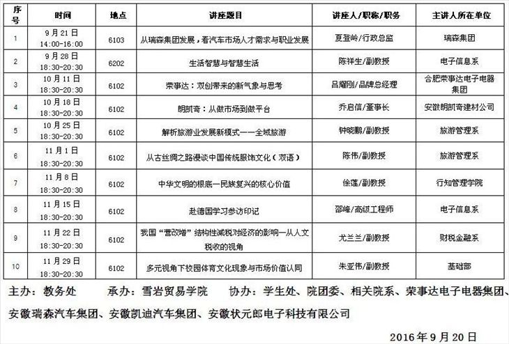学院2016年下半年(第七期)财贸大讲堂安排表