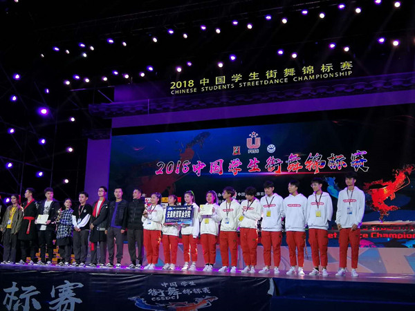 11月8日-12日,由大学生体育协会主办的2018中国学生街舞锦标赛在安徽大学磬苑校区举办。本次比赛共有来自19个省、48所院校的600余名运动员参加。我校由公共教学部主任王静带队,街舞代表队教练员岳吉方、桑磊、郭清担任指导,周延、方晨起、姚萌、张素素、邱陆峰、张同宇、常婉婷、丁玉梅、吴琪、张鑫硕、钟国武等11名街舞代表队成员参加了比赛。在5天的激烈比赛中,全队团结一致,齐心协力,勇于拼搏,努力展现,最终获得高职高专组全国大学生街舞规定套路-Jazz推广套路亚军,Hiphop推广套路季军,原创齐舞第四名,其中,方晨起同学获得1VS1battle(斗舞)前八强和“最佳表现奖”。