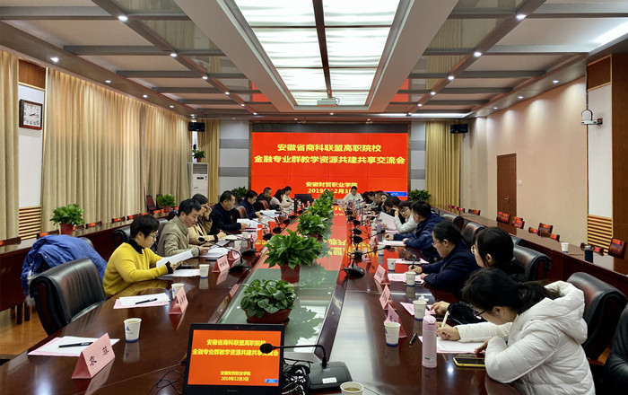 为贯彻落实国务院《国家职业教育改革实施方案》和《安徽省职业教育改革实施方案》文件精神,探索金融专业群应用人才培养新方式,实现教学资源共建共享,12月3日,学校举办安徽省商科联盟高职院校金融专业群教学资源共建共享交流会。校长刘银国出席会议并讲话。学校科研处副处长王海龙,阿里云安徽区云业务经理吴勇清、阿里云解决方案专家袁菲、安徽省商科联盟各成员高校金融专业教师与我校相关专业教师参与会议讨论。茂荫财金学院副院长方春龙主持交流会。