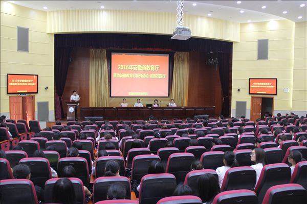 5月25日下午,由安徽省教育厅、中国人民银行合肥中心支行、国家开发银行安徽省分行和安徽省农村信用社联合社共同开展的2016年资助教育“诚信校园行”活动第二站走进我院,目前在校的我院受助同学及辅导员代表等近400人在学院报告厅聆听了讲座。