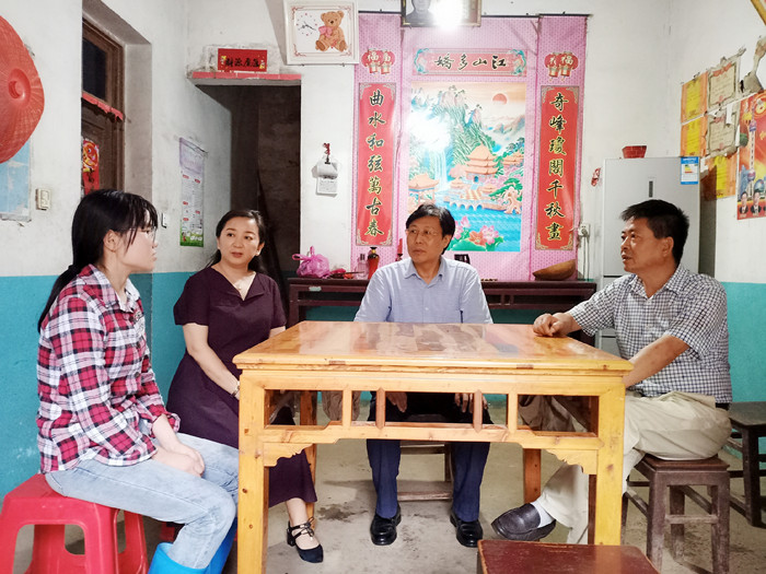 为宣传贯彻学生资助政策,全力做好教育扶贫资助工作,健全资助育人服务体系,落实打赢脱贫攻坚战的决策部署,学校对2019年暑期学生资助“百千万”走访活动作出部署,由全体校领导带队赴一些贫困县区走访慰问特困学生家庭。7月9日,副校长胡戴新率领学生资助“百千万”走访第四组成员,前往枞阳县走访慰问建档立卡和经济困难学生家庭,并送去慰问金。雪岩贸易学院党总支和朱熹文旅学院党总支负责同志随行。 走访组成员冒雨前行,深入枞阳县横埠镇中义村、金社乡枫冲村、会宫镇光裕等地对建档立卡和经济困难的学生家庭进行了走访。胡戴新一行每到一户家庭经济特困家庭,与学生及家长进行了深切交谈,详细了解他们的家庭经济情况和生活状况,询问了贫困学生暑期学习、生活和工作状况,并宣传了国家、学校等各项资助帮扶政策,征询了学生及家长对学院资助工作的意见和建议。当得知一位学生很小就失去父亲和母亲相依为命,她依然能刻苦学习,利用暑期打工赚钱时,胡戴新对受访学生面对逆境能够自立自强、阳光上进、勤奋好学的精神给予了充分的肯定和赞扬,鼓励她克服困难、迎难而上、最终战胜困难,要始终相信,知识改变命运,读书创造未来。