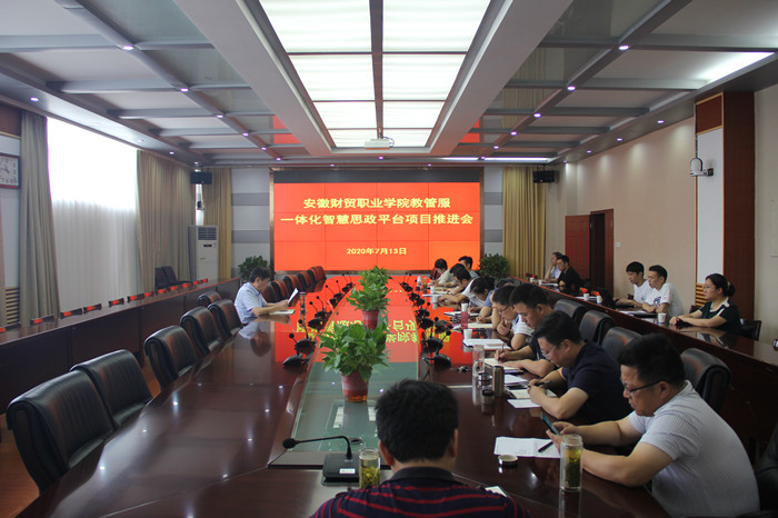 为加快推进我校教管服一体化智慧思政平台建设,7月13日上午,学校召开项目建设推进会,党委委员、副校长胡戴新主持会议并讲话,相关部门负责人参加会议。