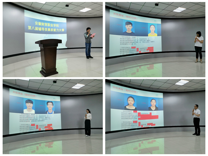 5月30日中午,现场比赛环节在3D实训室拉开帷幕。班情熟知比赛要求参赛辅导员根据提供的学生照片,精准识别学生姓名、家庭经济情况、获得奖助学、班级整体资助等情况,作出快速反应、精准判断、即刻回答10个问题。参赛辅导员准备充分,对所带班级学生情况的熟知程度以及对学生资助政策的把握程度,博得评委们的肯定与赞许。