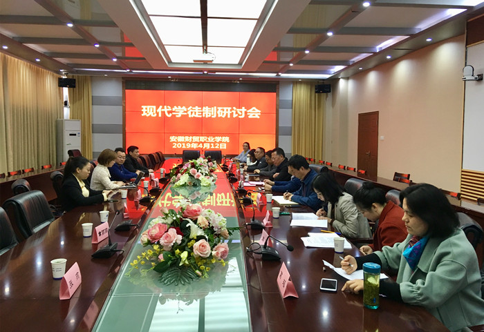 为进一步完善校企合作育人机制,创新技术技能人才培养模式,落实我校“现代学徒制”试点项目建设细节,4月12日,学校召开“现代学徒制”试点项目研讨会。安徽黄埔网络科技集团股份有限公司技术总监汪伟、党委书记黎飞、人事部总监刘尚晶,安徽博强财税服务有限公司董事长余雪、董事长助理薛妍妍、经理章丽丽、张燕等合作企业方导师,校长刘银国出席会议。会议由科研处副处长王海龙主持。